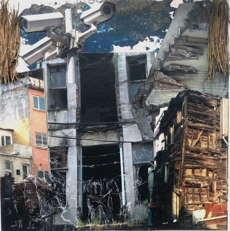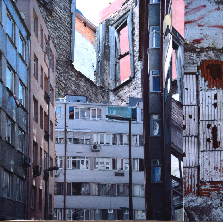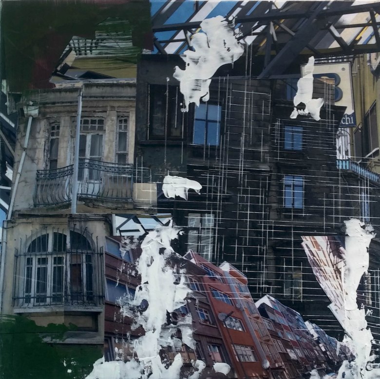 As the multicultural city of our day undertakes a tremendous change, these images based on space-time and the volatile existence of memory, undertake the analysis of Istanbul’s culture and history based on architectural structure, and present the current “situation” to the observer. These panels of personal reflection, projects an eerie situation; they seek the singular structures of seperate periods that are on the verge of disintegration, and are destined for destruction, in the jumbled, to-date city pattern. The artist’s belief in sociocultural opulence makes so that there’s also hope of regeneration contained inside the images.