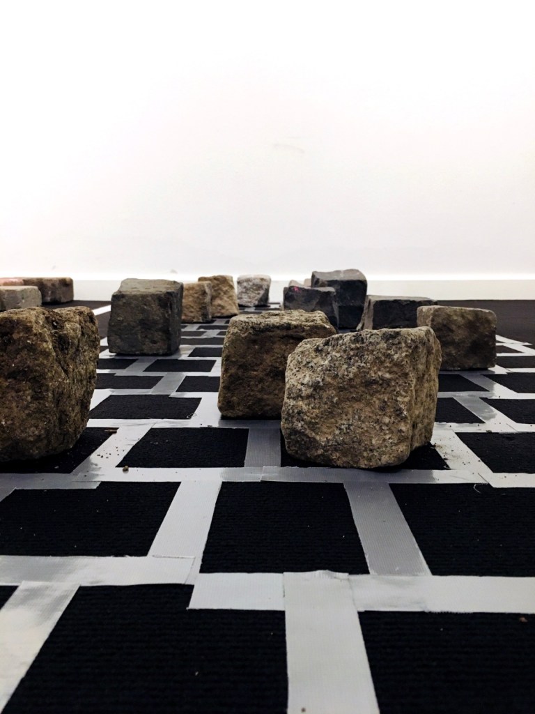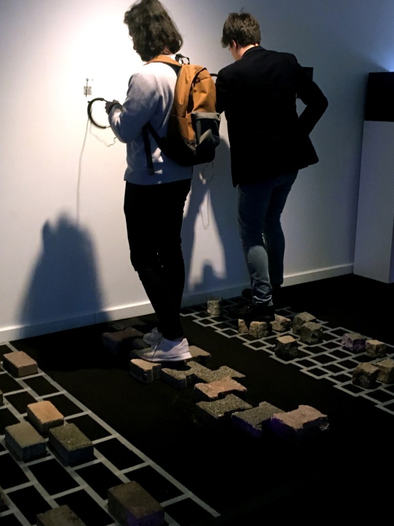 various, paving stones, qr codes, headphones, ipads, mixed media, installation, 2020